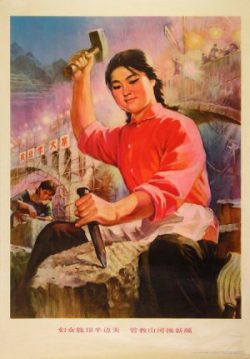 Ван Чжэн: Законы о браке. Потому что все эти женщины, с самого первого дня, с 1949 г., очень много трудились над продвижением равенства полов, равенство между мужчинами и женщинами стало официальной, господствующей идеологией. Не сегодня, но в те годы, она была господствующей во всех видах культурной продукции, литературе, фильмах, плакатах, везде. Везде. Женщины сломали гендерные барьеры во всех профессиях — женщины-летчики, ополченцы, машинистки, все такие вещи. Всё, что раньше рассматривалось как мужские занятии и профессии… женщин побуждали к тому, чтобы прорваться в эти области, находящиеся под господством мужчин.